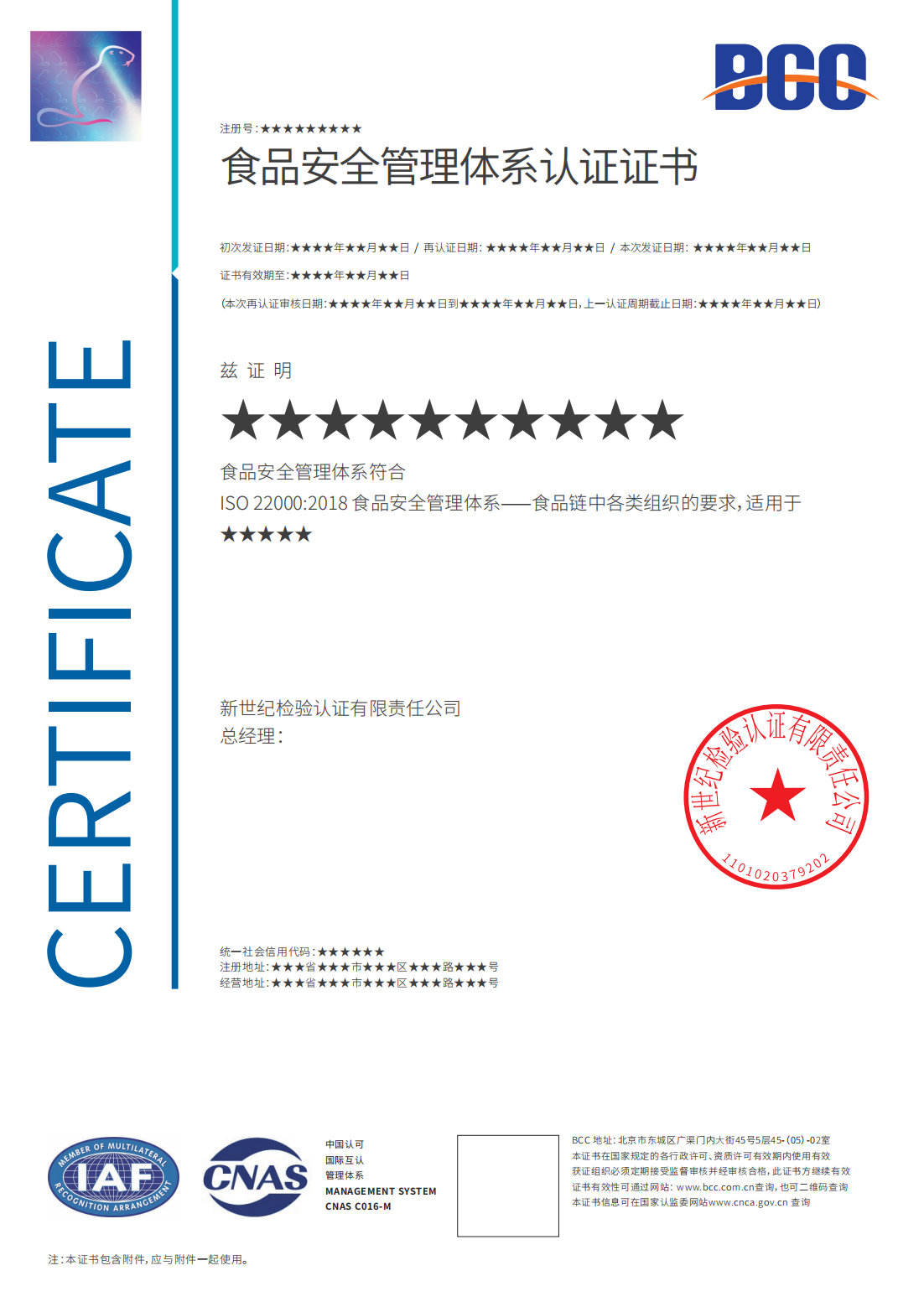 除此以外,申請(qǐng)食品安全管理體系認(rèn)證的企業(yè)還需提交一些輔助資料,如果貴司要申請(qǐng)辦理,可咨詢(xún)我們,進(jìn)一步了解情況!